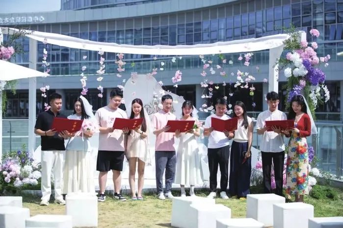 2025年5月20日,多对新人在郑州市金水区户外颁证基地参加集体颁证仪式。