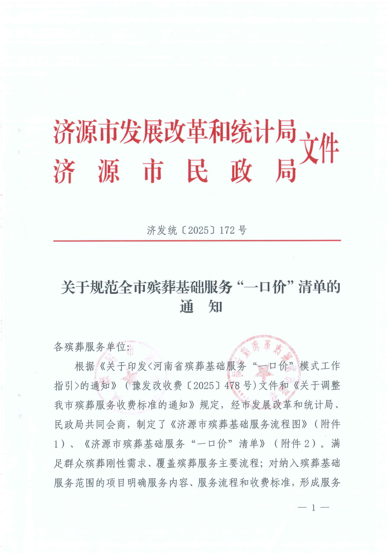 关于规范全市殡葬基础服务“一口价”清单的通知