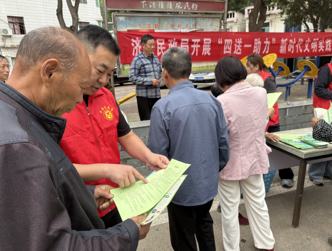 为深入推进新时代文明实践活动,切实把民政政策送到群众身边,9月17日,济源市民政局志愿者团队走进下冶镇,开展“四送一助力”新时代文明实践活动,以政策宣讲、暖心服务架起民政与群众的“连心桥”。