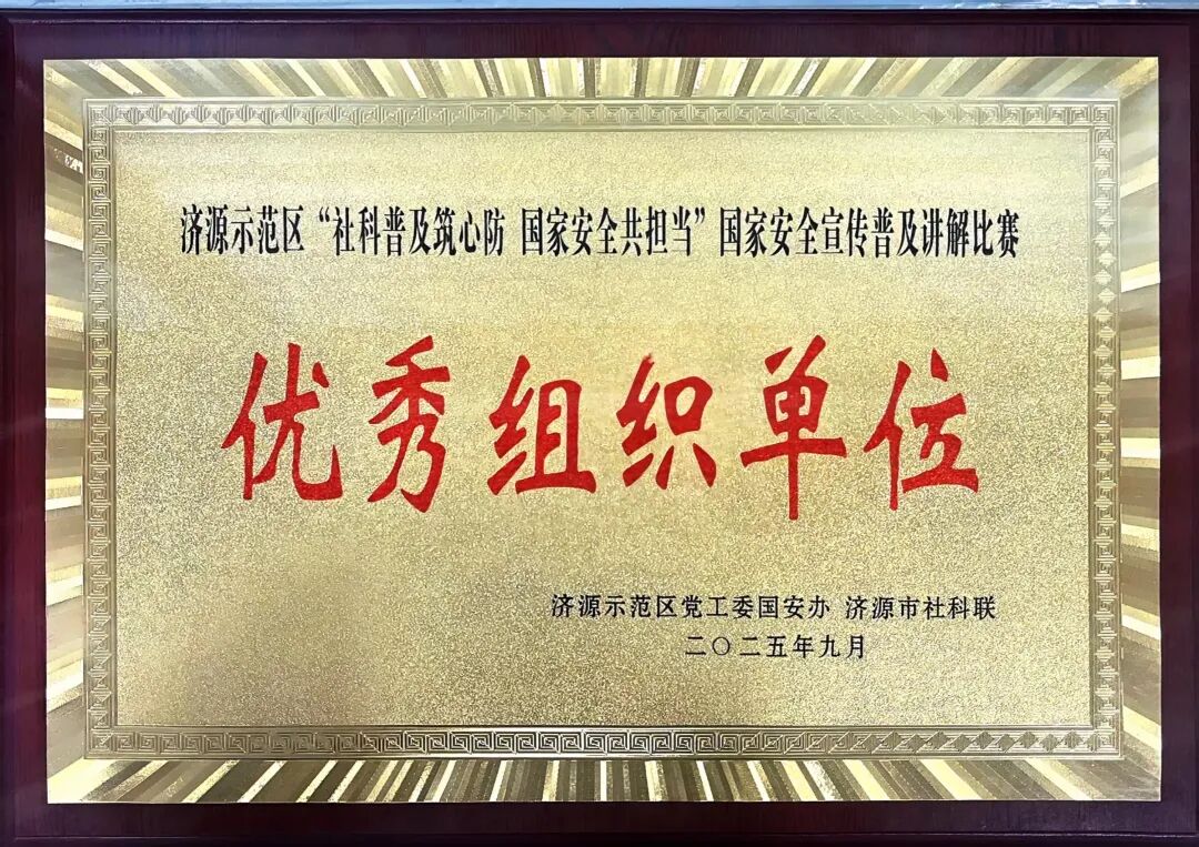 △ 民政局荣获济源示范区“社科普及筑心防 国家安全共担当”国家安全宣传普及讲解比赛 优秀组织单位奖
