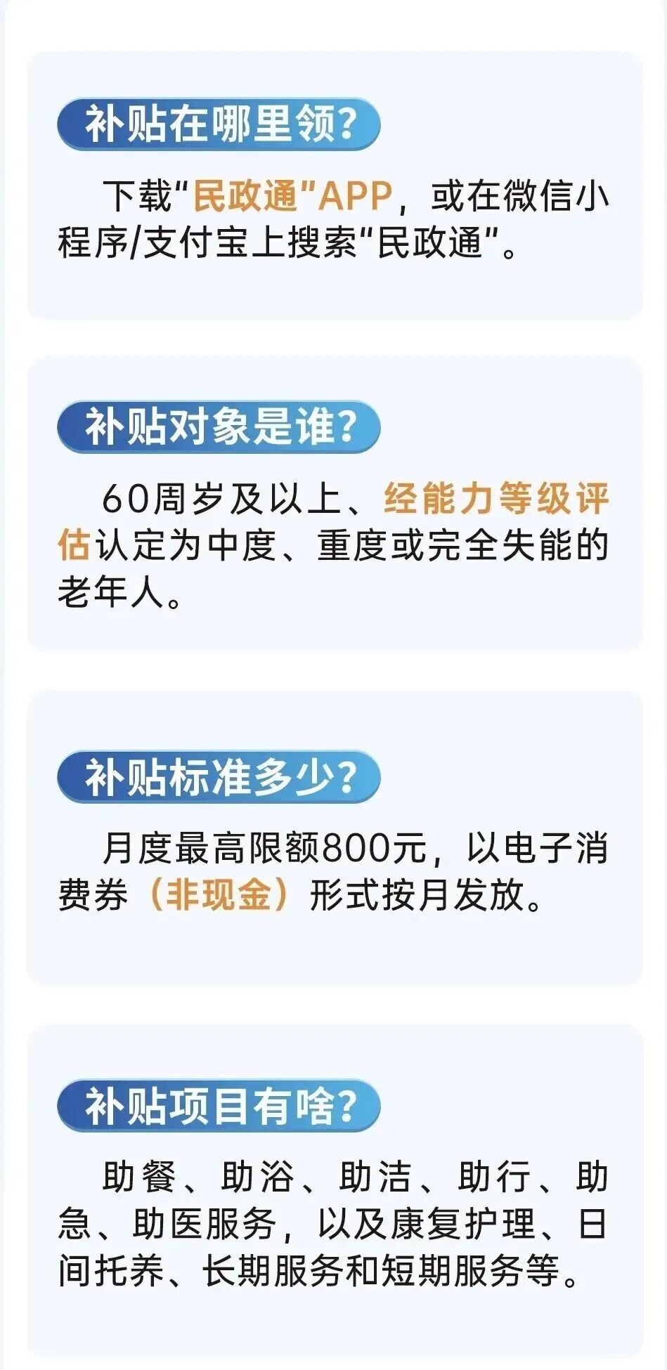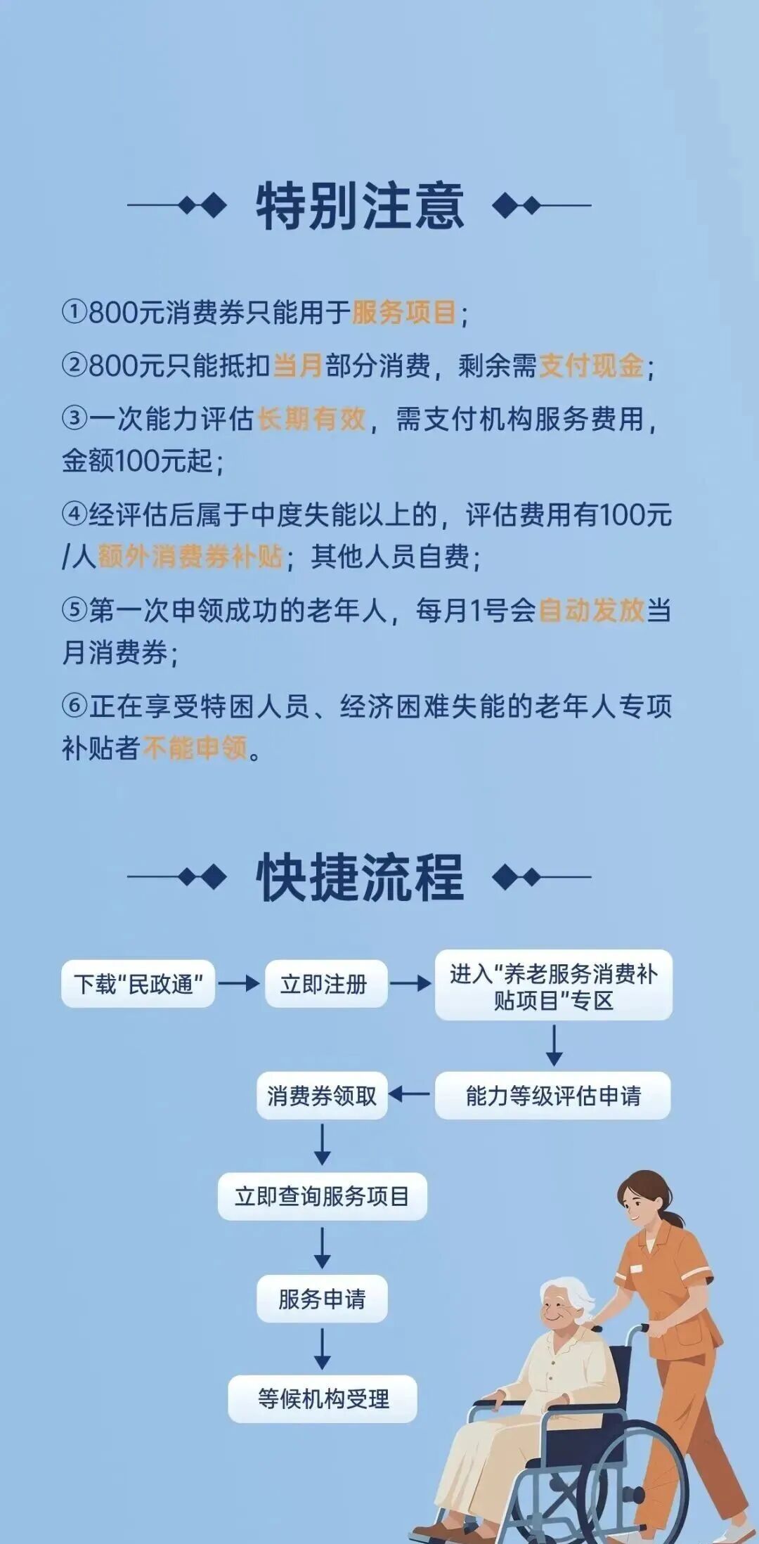 根据民政部、财政部的统一部署,在今年1月到12月期间,向我省中度以上失能老年人发放养老服务消费补贴。具体怎么申领?一起来看看操作指南↓↓↓